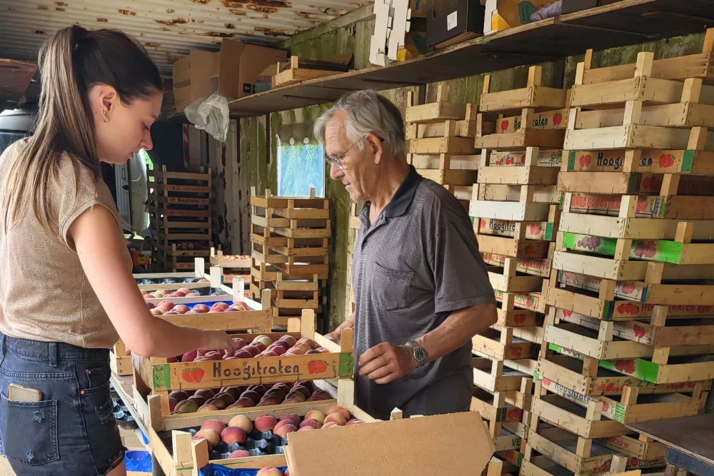 De familie Rosseels startte in 1956 met de perzikteelt in het Hageland, vanaf 1976 werd de teelt combineerd met grondwitloof. Heel de familie is trouwens mee aan de slag in het perzikseizoen, op de foto onder herken je vader en kleindochter Rosseels.