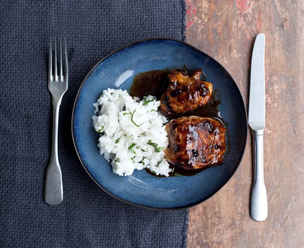 Borstel wat marinade over de vis, keer de vis regelmatig en borstel er steeds wat marinade op. Voeg tenslotte de rest van de marinade toe en blijf borstellen tot de vis gaar is en de saus gekarameliseerd. Let op: zeeduivel is een vaste vis en heeft meer tijd nodig om te garen dan bijvoorbeeld kabeljauw.